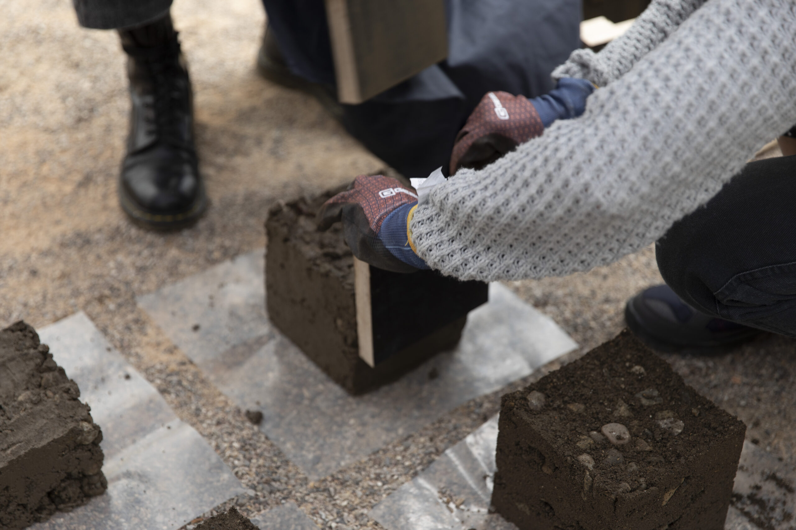 The demolition of the Monolity premien object does not represent its end, but rather another phase of its existence. The clay monolith, originally designed as temporary and subject to natural erosion, will now be demolished and simultaneously returned to the creative process. The material obtained becomes the input for a follow-up workshop focused on the rammed earth technique, where it will be reprocessed and transformed into new structures.