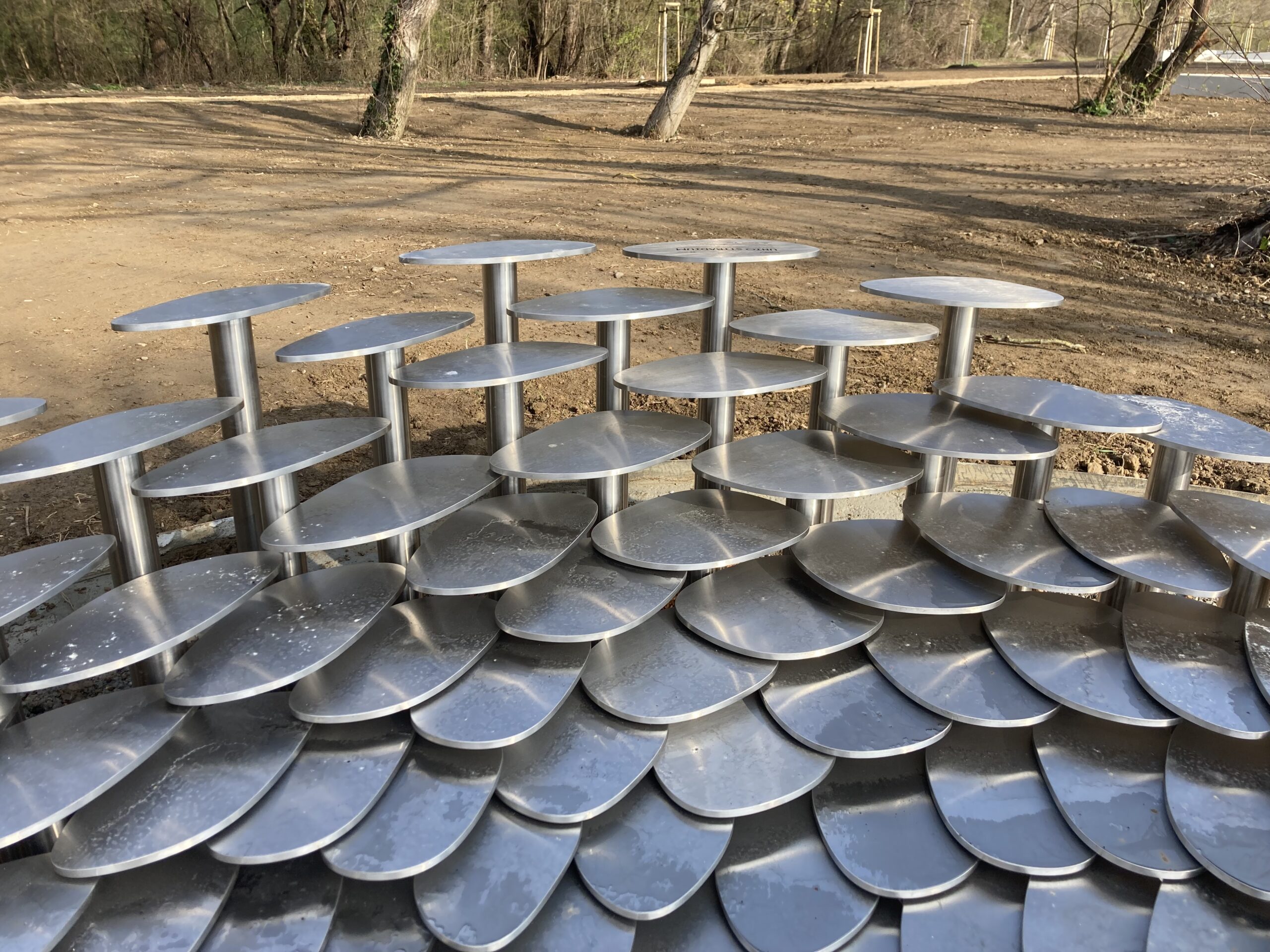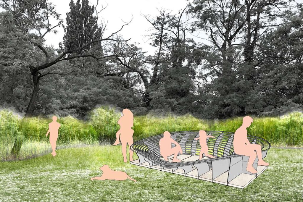 Projekt Úniky v priestore/Public Escapades, za ktorým stojí ateliér WOVEN, zahŕňa 4 pavilóny, ktoré po dvojiciach vzniknú v rámci dvoch revitalizovaných území – Alúvium a Trenčiansky Luh. Pavilóny sú poňaté ako šperky týchto verejných priestorov. V náznakoch sa funkčne približujú mestskému mobiliáru, ale táto funkcia nie je jasne daná ani ohraničená. Akcent je kladený na kontrast medzi prírodným a manipulovaným, pričom materiál-nehrdzavejúca vysoko leštené oceľ, je koncepčne zvolený v projektoch práve ako následok tohto kontrastu. Dizajnová línia pavilónov vychádza z organického tvaru v tomto prostredí vyskytujúceho sa korýtka riečneho- sladkovodného lastúrnika, lat. Unio crassus.